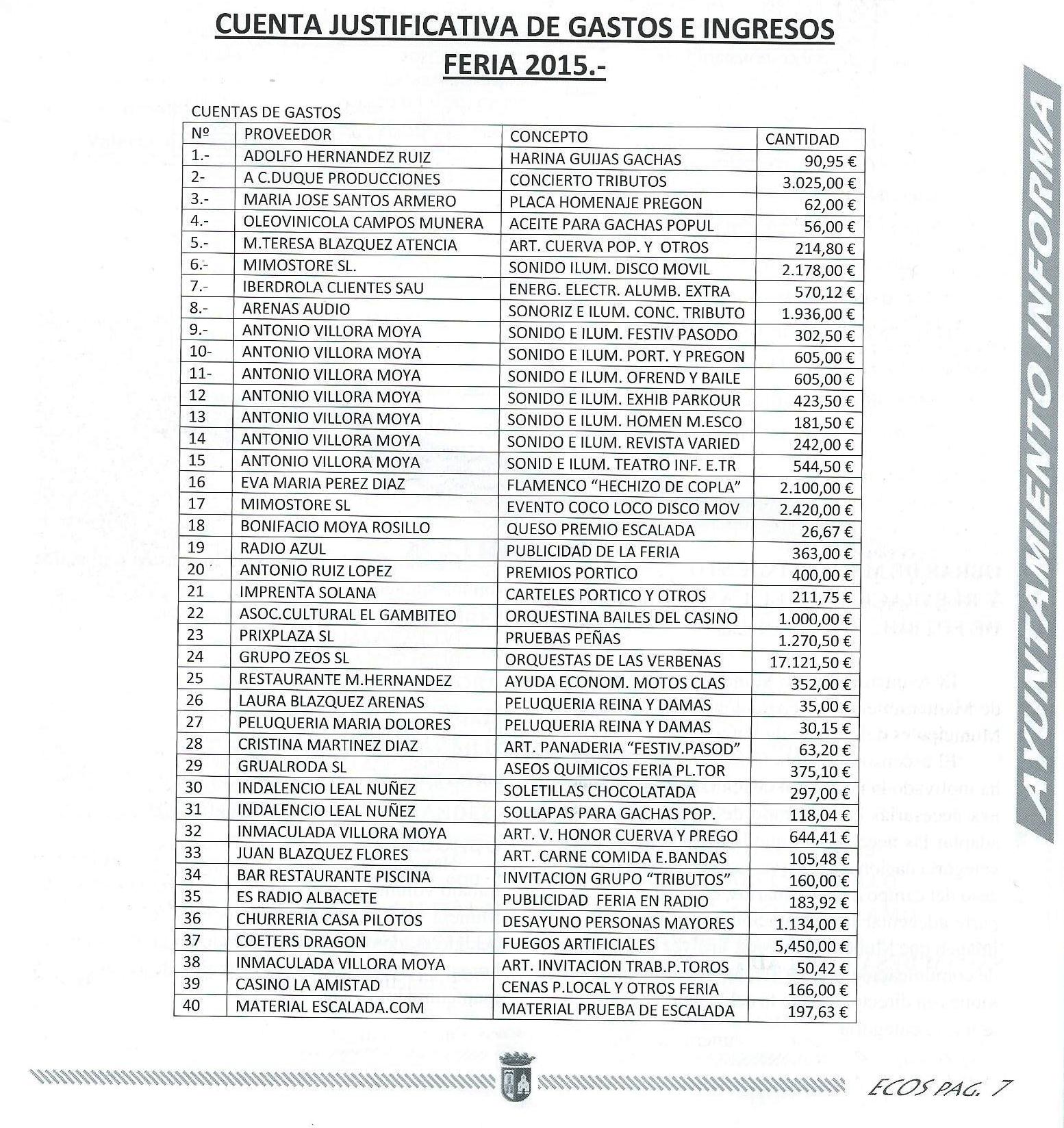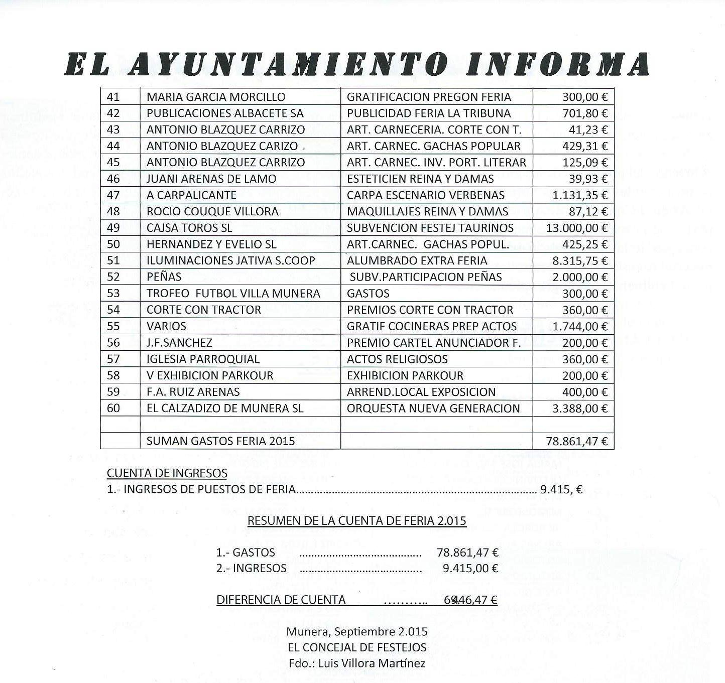 Análisis sobre cuenta justificativa de gastos e ingresos Feria de Munera 2015.